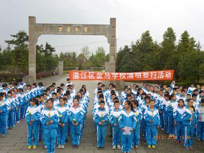 2012年3月30日下午,温江区金马学校组织师生300余人来到温江区烈士陵园进行清明祭扫活动。祭扫活动在肃穆的氛围中缓缓展开,校领导先作了发言,希望同学们沿着先辈遗愿,为建设明天风发图强努力学习。学生代表向英烈们敬献了花圈,表达了他们的无限哀思。之后同学们庄严宣誓,将珍惜现在的生活,铭记先辈英烈,发扬青年少风采,不畏限难险阻,去开拓美好幸福的未来,让我们的温江更加美丽,让我们的祖国更加繁荣。