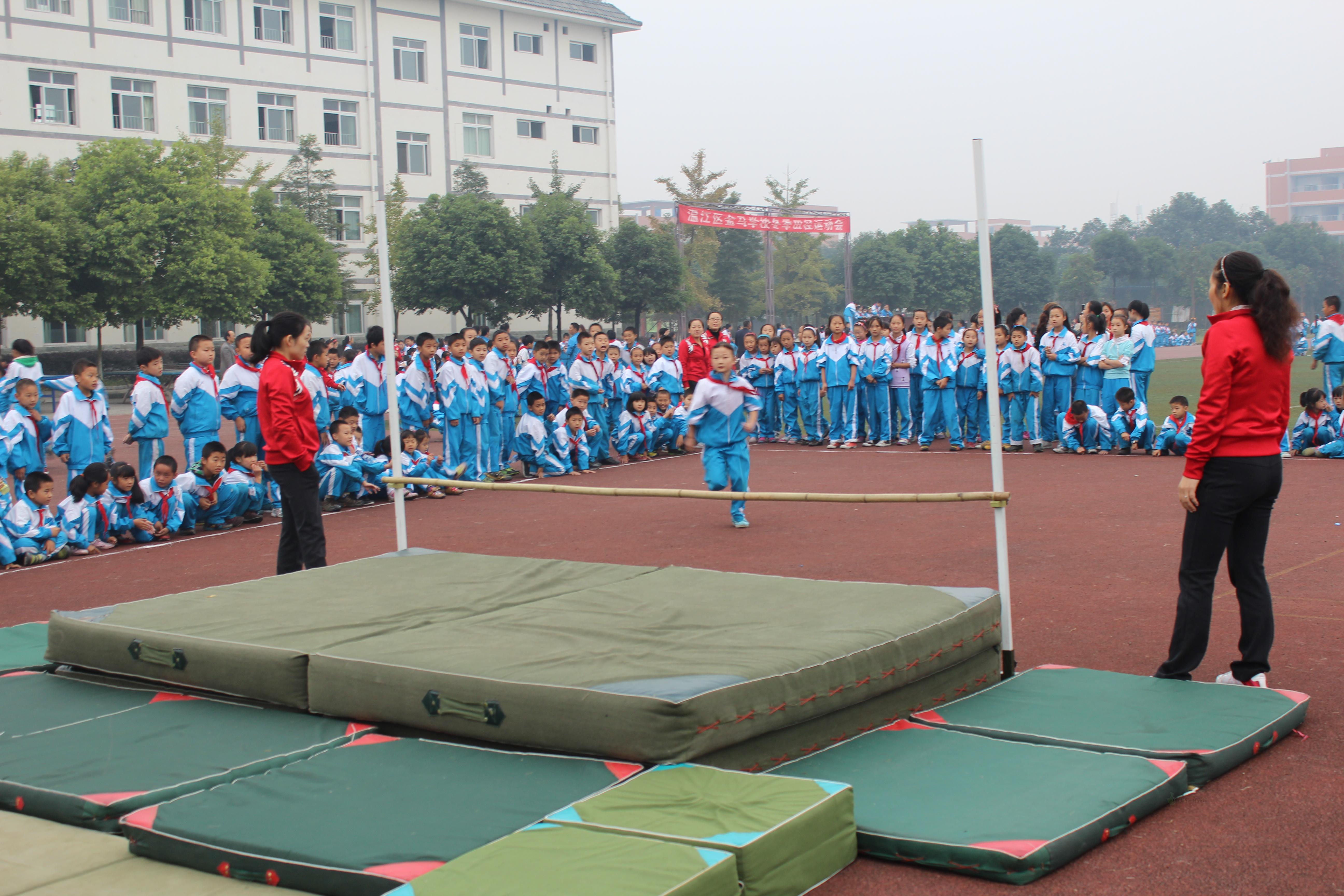 2012年1月1日至2日,金马学校在校运动场举行了为期两天的冬季田径运动会。本届运动会以“扬体育精神,展金马活力”为主题,开展丰富多彩的体育活动,活跃校园文体生活,促进学生全面发展。8:00运动会入场式开始。在国旗、彩旗队、气球队的引导下,由七八年级组成的方阵队迈着矫健的步伐依次步入会场,同学都以本班独具的特色向到场的领导,老师同学们展示了对运动精神的理解。入场式结束后,举行了运动会开幕式。首先,举行了升旗仪式,然后由夏校长致辞,接着由运动员、裁判员代表宣誓,最后夏校长宣布校运会正式开幕。