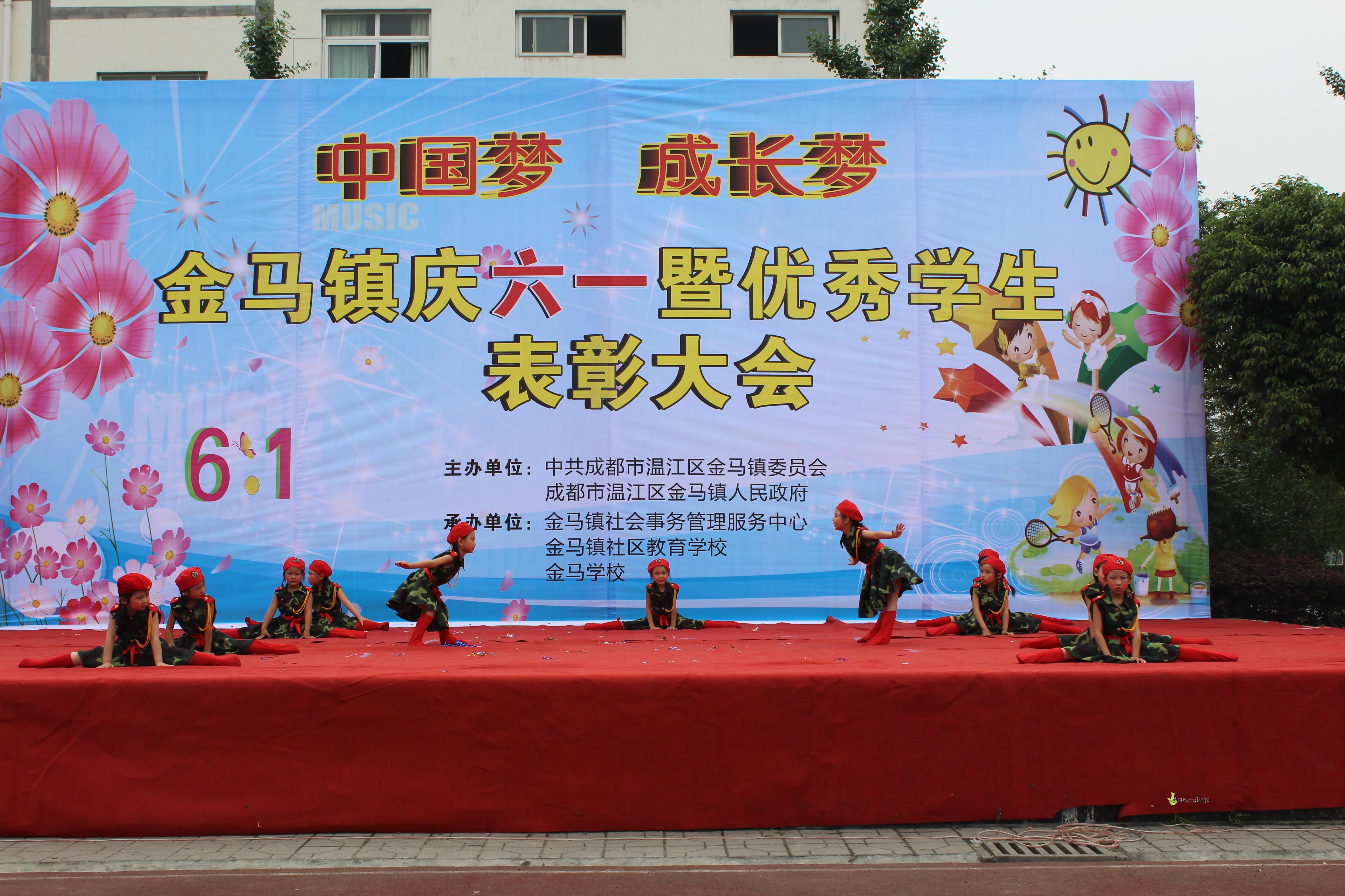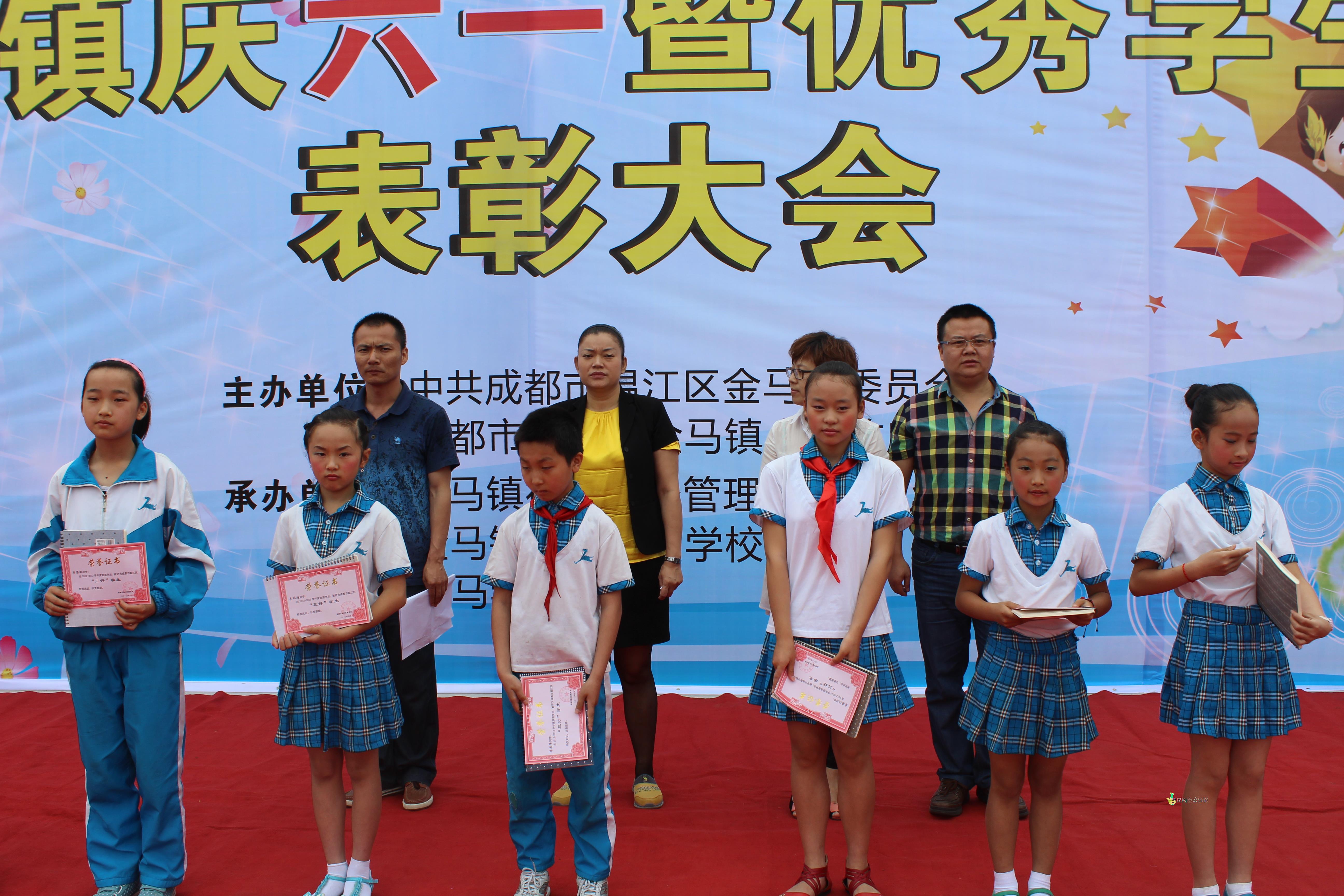 上午九点,庆祝活动准时拉开帷幕。活动由金马学校夏勇校长主持,首先金马镇副镇长王凤琼致辞祝福孩子们在“中国梦”的引导下健康成长,接着金马社区教育学校李红军老师宣读了金马镇乖娃娃、区优秀班集体、区三好、区优干、表彰决定,并为获奖同学送上了奖品和奖状。随即活动正式开始。