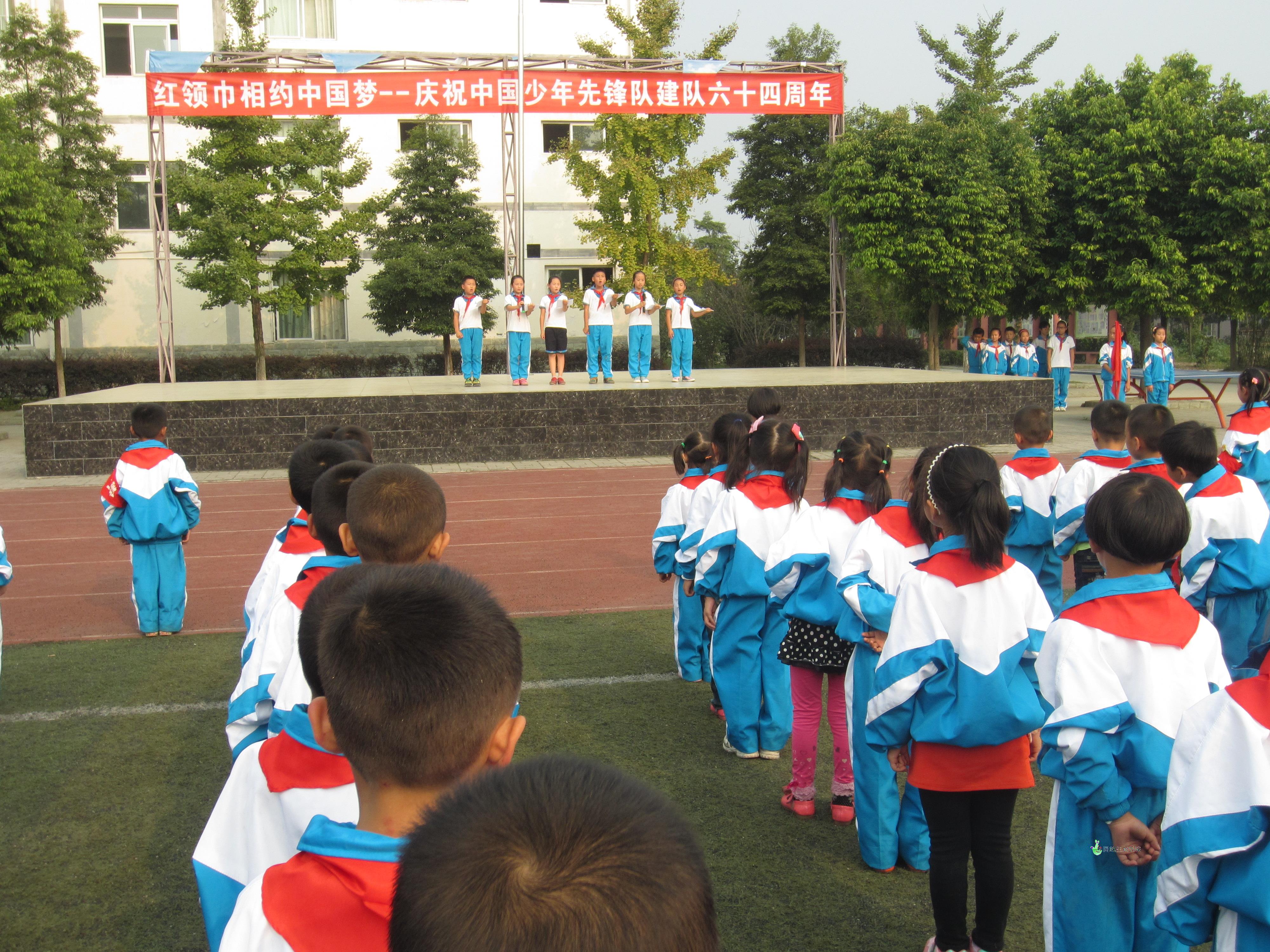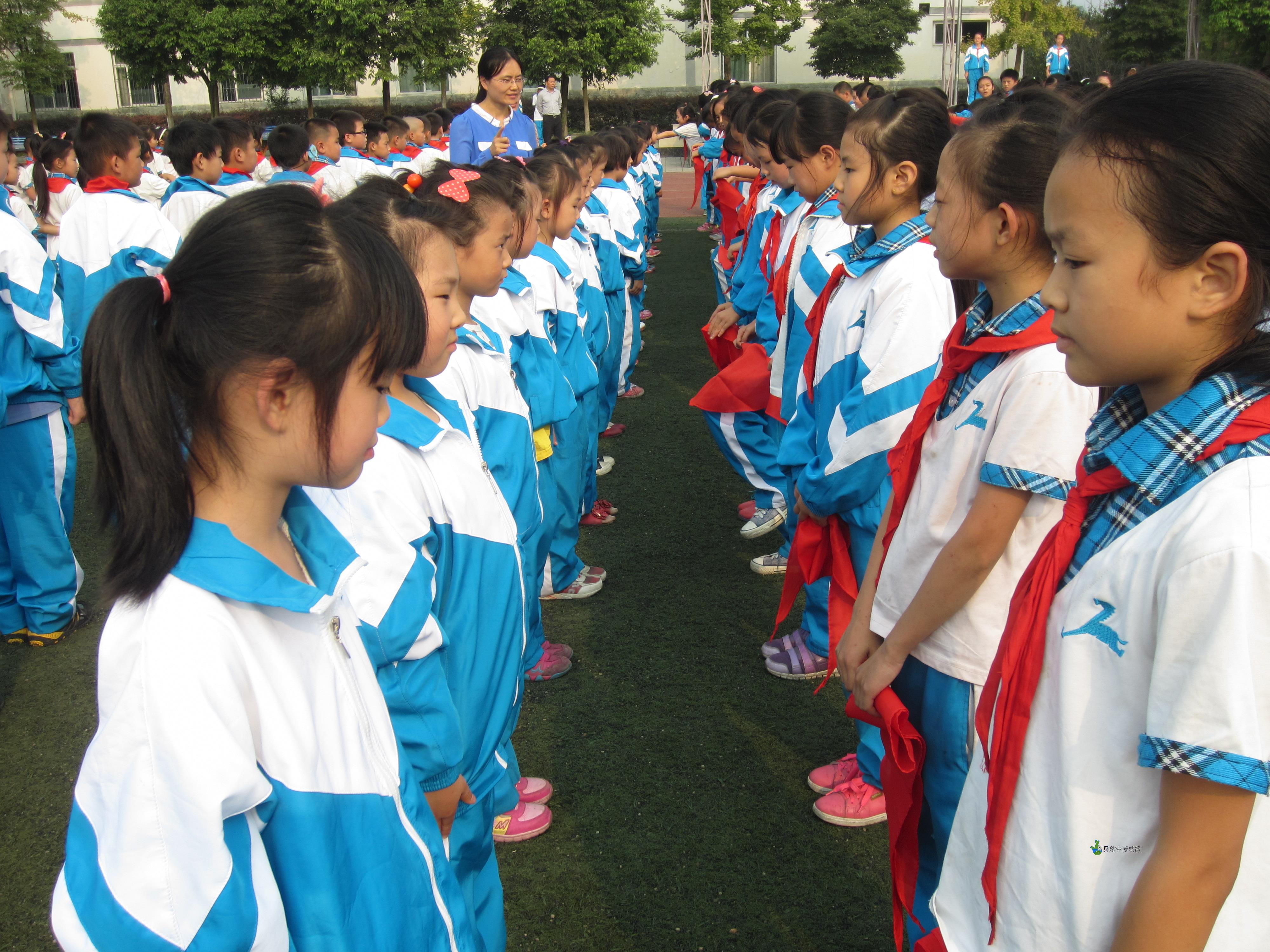 2013年10月11日下午,为庆祝少先队建队日第64周年纪念日,我校行了少先队建队日庆祝活动暨一年级新队员入队仪式。全体队员为了这一天的到来,做了充分的准备,他们在班主任和辅导员的精心辅导下学习了少先队的基础知识,掌握了有关仪式的规范动作,演练入队仪式的宣誓呼号。仪式上,大队辅导员老师宣布了入队新队员名单,老队员代表为一年级两百余名同学戴上了鲜艳的红领巾,使他们成为了一名光荣的中国少年先锋队队员,当鲜艳的红领巾佩带在他们的胸前时,新队员的脸上都洋溢着激动与自豪。