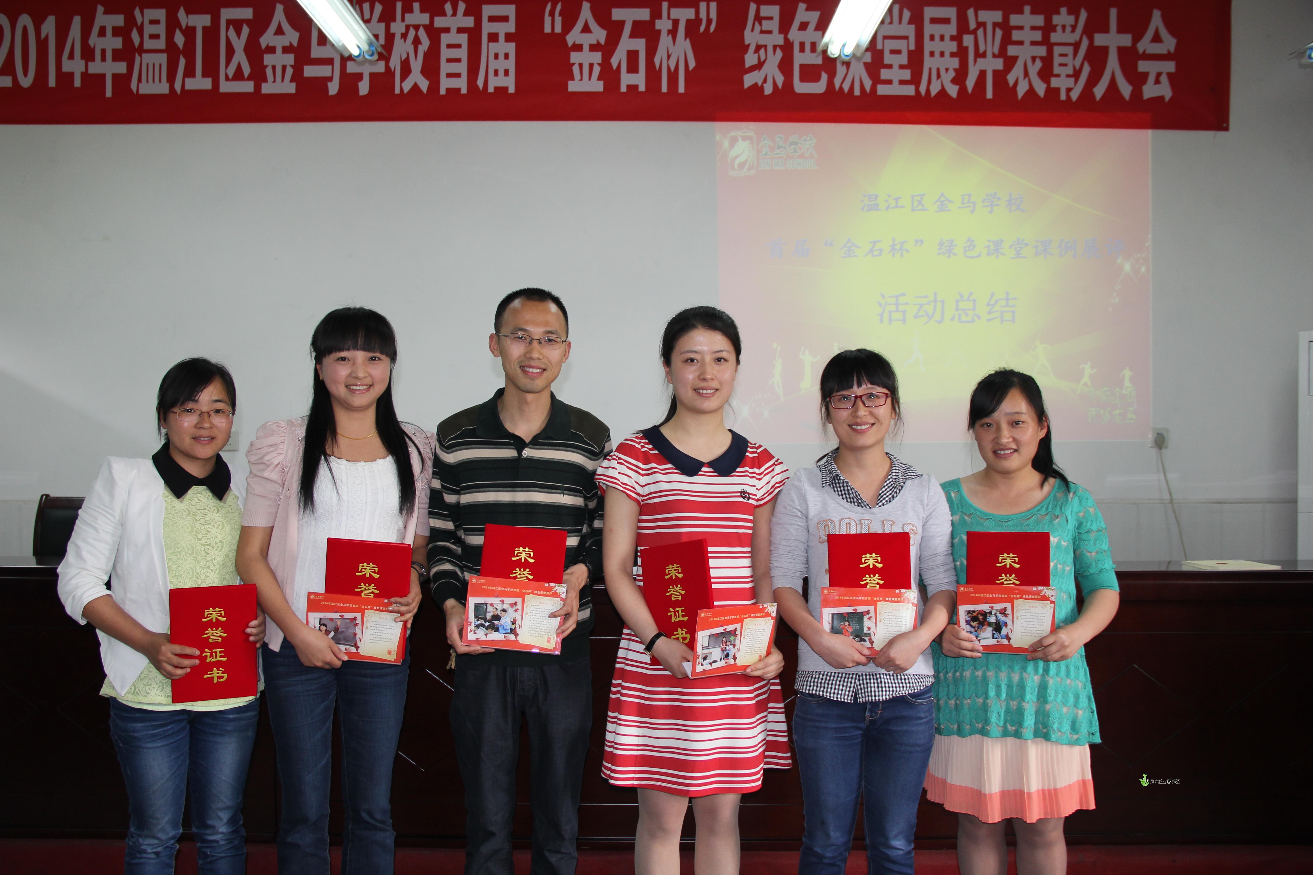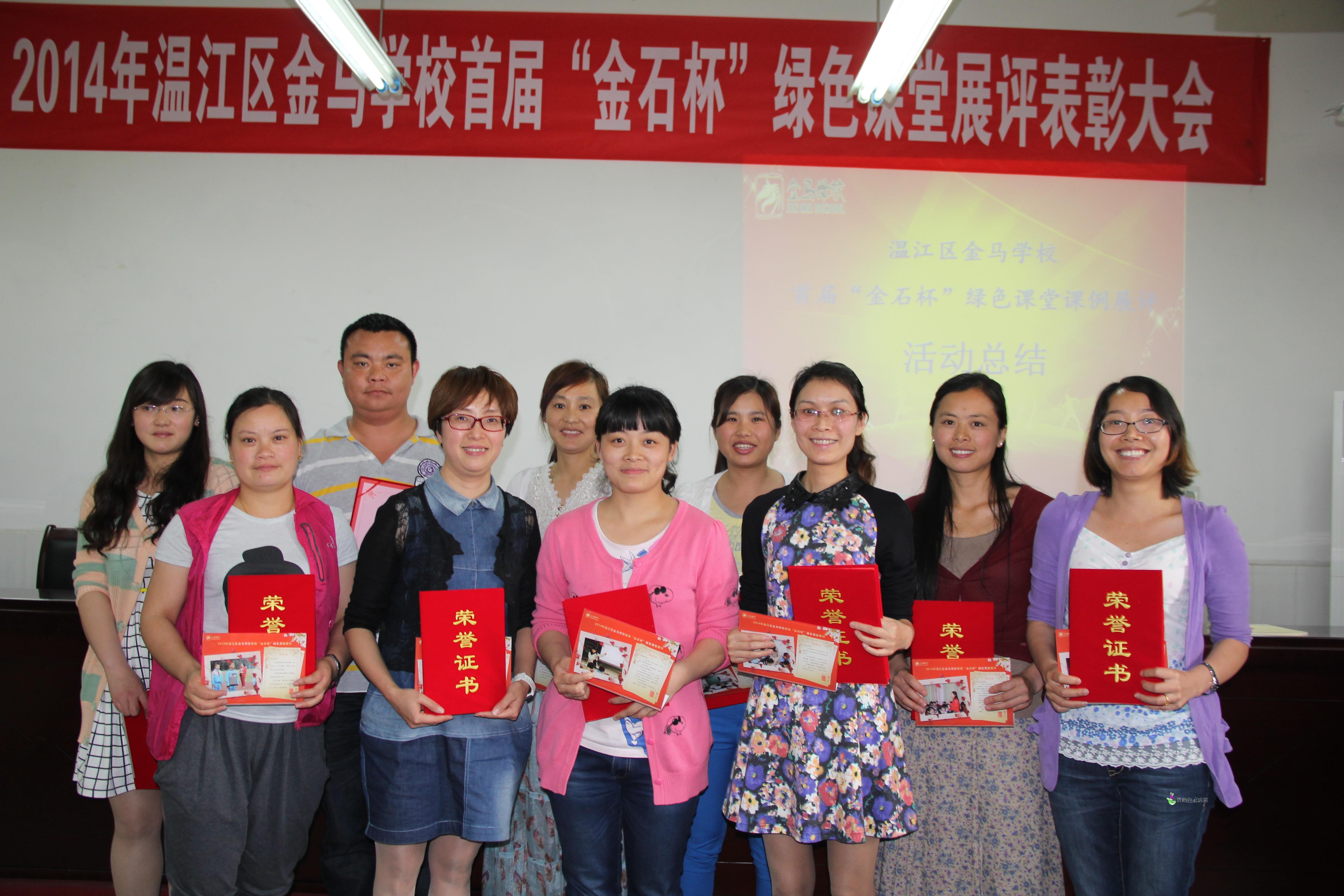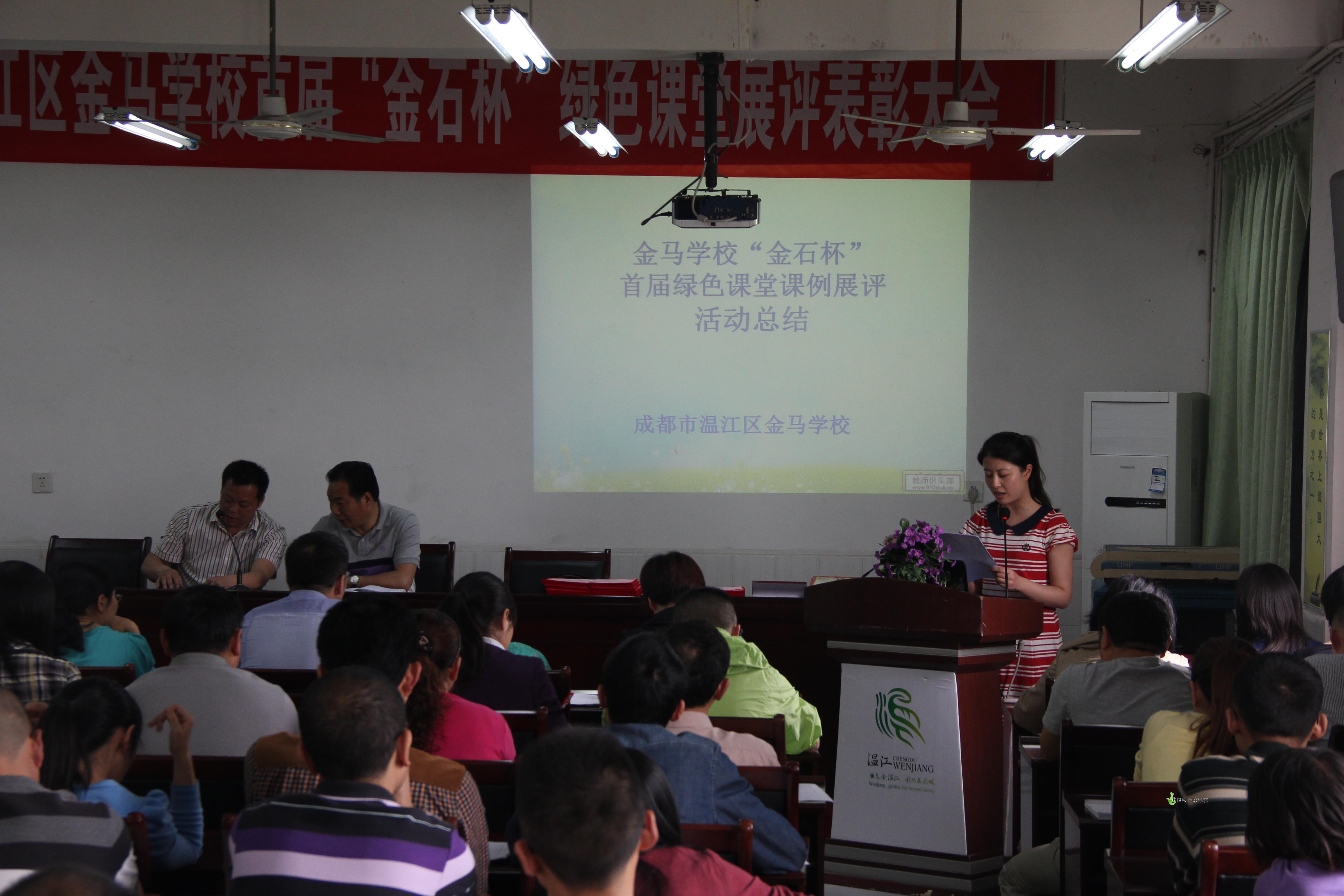 2014年5月13日,温江区金马学校首届“金石杯”绿色课堂总结表彰会在学校会议室隆重举行。会议由副校长康庆洪主持,徐贵平校长等行政和全体教师参加了表彰大会。