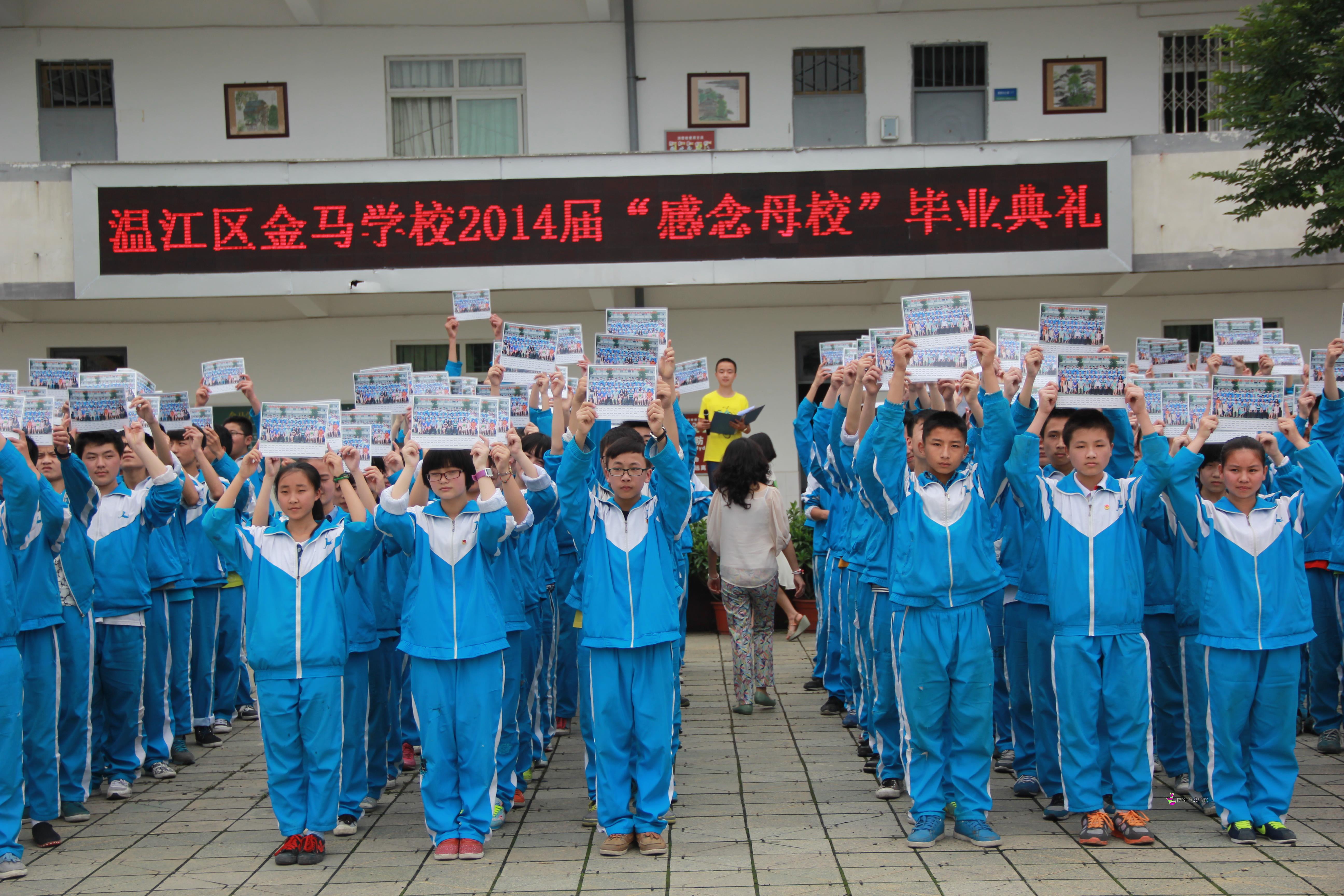 毕业典礼由教导副主任苟梅和九年级学生共同主持。首先,九年级学生代表上台发言,代表深情回顾了三年学习生活的点点滴滴,感谢老师们的培育之恩,表达了对母校无限的眷念之情。教师代表杨永忠老师在发言中勉励同学们在今后的征程中要始终坚守自己的信念,保持“文崇金石、武修龙马”的作风,脚踏实地,努力进取,并祝愿全体毕业生中考大捷,学业有成,创造人生的辉 煌。