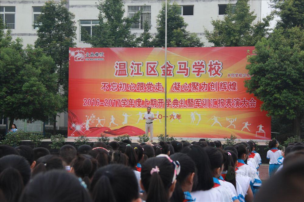 “金桂馨香飘悠远,师生勤勉迎学年 ”。9月1日上午8点30分,温江区金马学校全体师生及家长代表齐聚一堂,隆重举行以“不忘初心跟党走,凝心聚力创辉煌”为主题的新学年开学典礼。