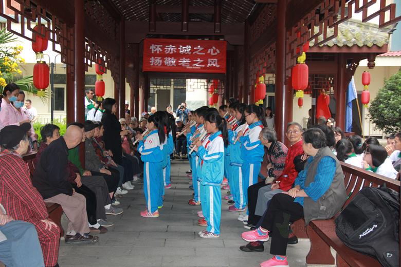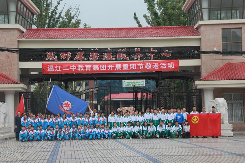 金秋十月爽,九九话重阳。在这秋高气爽,丹桂飘香的季节,我们迎来了重阳佳节。为弘扬中华民族爱老敬老的优秀传统美德,营造尊老、爱老、助老的氛围,10月8日,金马学校和温江二中一起到“成都市康馨缘颐养中心”共同开展重阳节敬老活动。