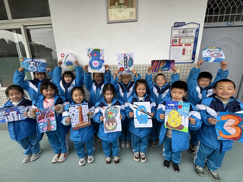 “原来数字能这么有趣!”参观的学生们驻足欣赏,不时发出赞叹。孩子们围着作品叽叽喳喳,一幅幅数字画像被施了魔法,让1-10这些简单数字,变身成满是童趣的立体小世界。老师们表示,此次活动打破了“数学=做题”的刻板印象,以前孩子觉得数学是枯燥的数字,现在通过画笔,数字变成了动物、风景、生活场景,孩子们在创作中巩固了数字认知与简单运算,更锻炼了观察力、想象力和审美能力,真切感受到数学藏在生活里、躲在创意中。