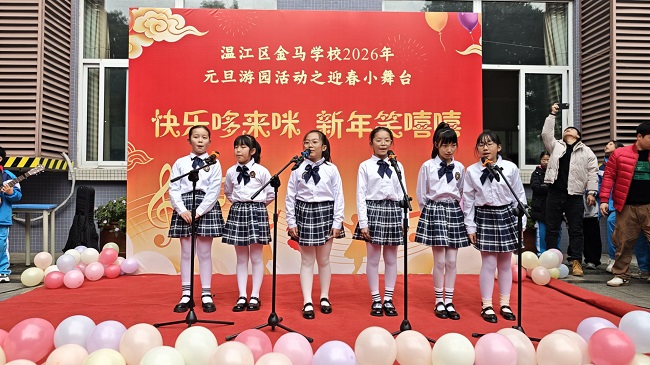 活动最后,音乐老师龙艺文与学生携手登台、温情合唱,师生同心演绎的旋律将现场氛围推向高潮,也为本次主题小舞台活动画上了圆满的句号。歌声里藏着热爱,欢笑中满是期盼,此次活动不仅为孩子们提供了展示自我、锻炼自我的平台,更让大家在艺术熏陶中感受新年的美好,在师生同乐中凝聚校园温情。
