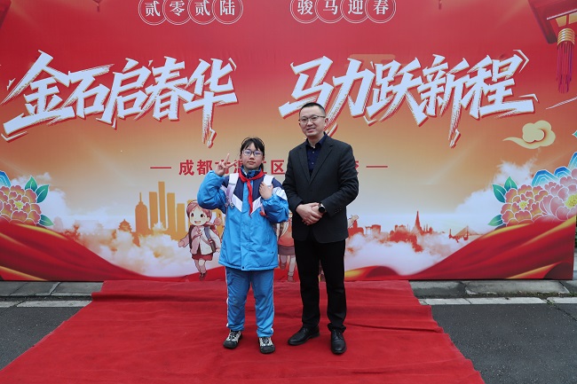 随后,全校师生共同收看了以“跃新年·启新程”为主题的成都市“开学第一课”。课程以沉浸式、体验式呈现思政内容,同学们专注感悟,立志以饱满姿态投入新学期,不负时光、不负韶华。