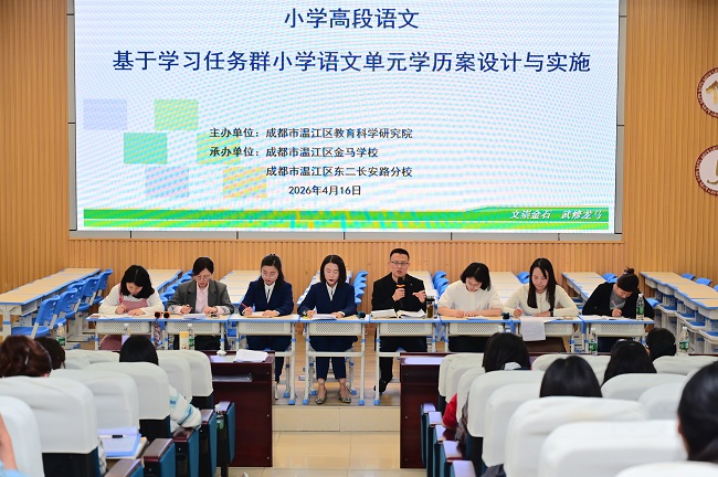 夏木葱茏,研思同行。为深入落实“思辨性阅读与表达”学习任务群要求,探索单元学历案设计与实施路径,4月16日,由温江区教育科学研究院主办、金马学校与东二长安路分校联合承办的区小学语文高段专题研讨活动在金马学校顺利举行。全区五年级语文教师齐聚一堂,共探思维培养新路径。活动由金马学校张爱媛老师主持。