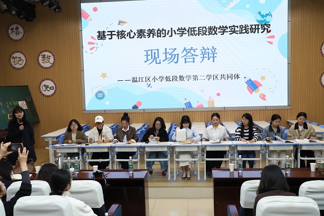 夏木葱茏,研思同行。为深入落实小学数学核心素养培育目标,助力低段数学课堂教学提质增效,2026年4月22日,由温江区教育科学研究院主办,金马学校与东二长安路分校联合承办的温江区小学数学二年级专题研讨活动在金马学校顺利举办。全区二年级数学教师齐聚一堂,共研教学之道,共促素养提升,本次活动由西财附小王鑫老师主持。